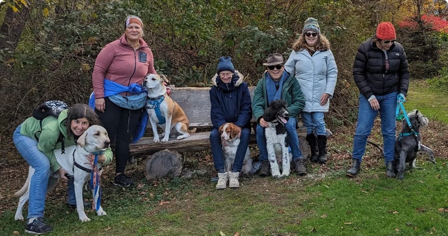 Join our walking club for structured strolls, light training, and community connection—great for dogs who need practice staying calm around others.