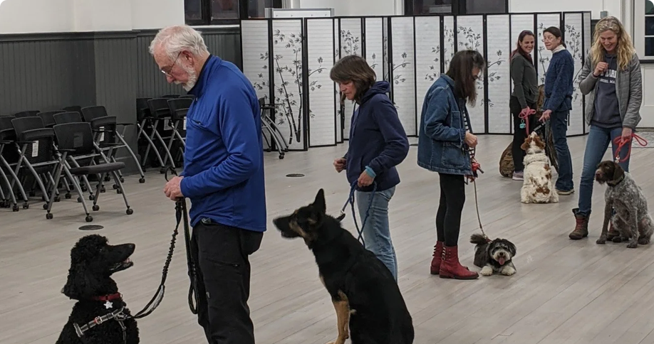 Build skills and confidence in a supportive group setting—perfect for socialization, basic obedience, and learning alongside other dogs.